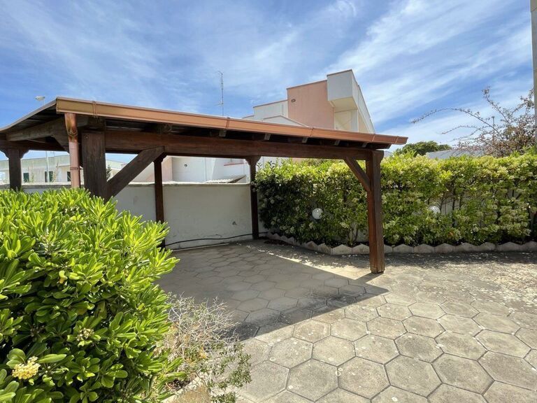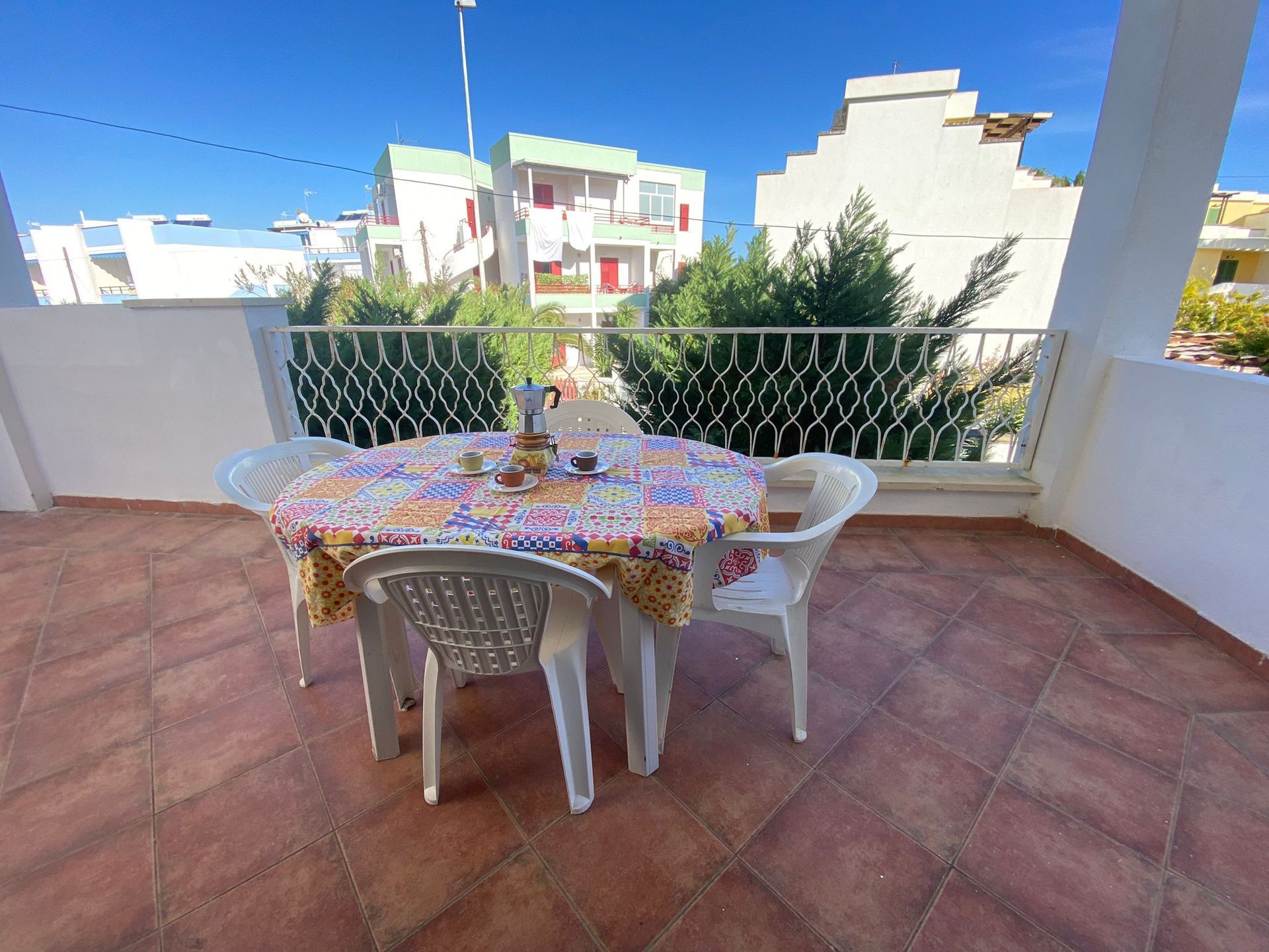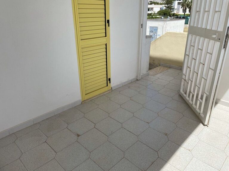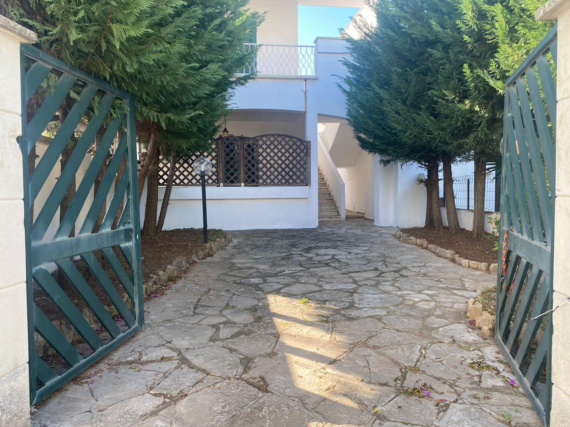 Ingresso con spazio esterno privato con ampia zona parcheggio per due auto, una doccia per rinfrescarsi al ritorno dal mare, una rampa di scale porta al primo piano dove si accede all'appartamento.