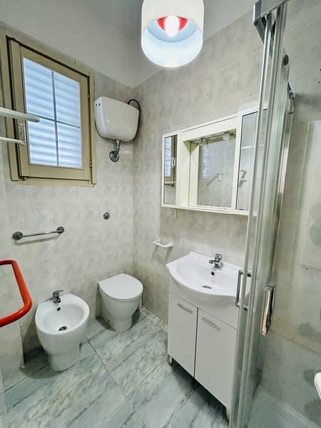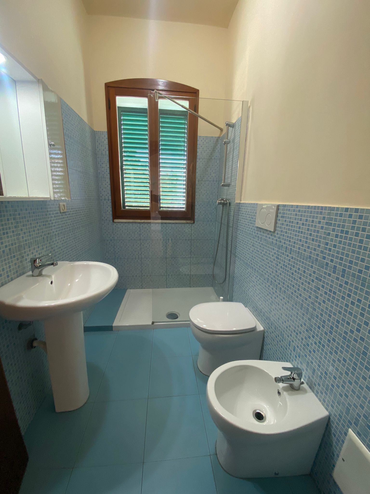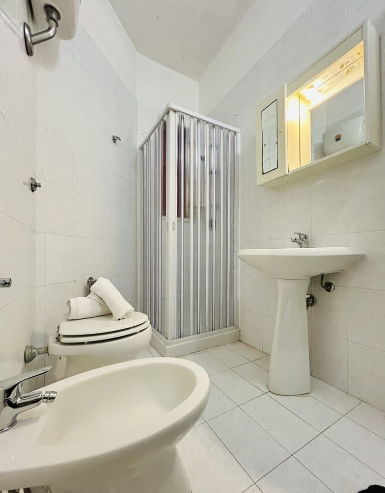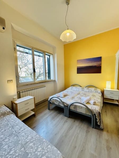 Dispone di due camere matrimoniali piu letto singolo, di un bagno completo con box doccia.