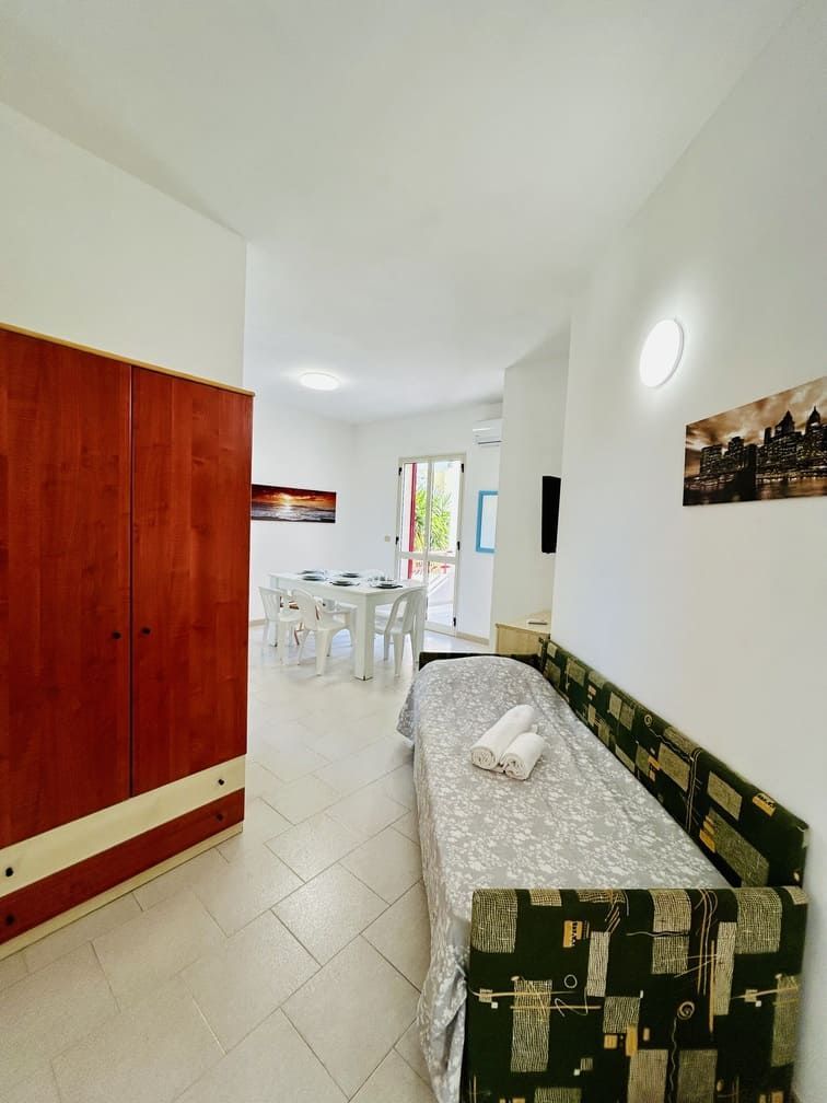 Residenza Dalia è un trilocale piano terra situato in baia verde in via dei tamerici , composto da ingresso soggiorno, dove troviamo la zona pranzo con un divano letto matrimoniale, una cucina attrezzata, due camere da letto matrimoniali e un bagno con box doccia, ampio patio esterno con lavello esterno e doccia esterna.