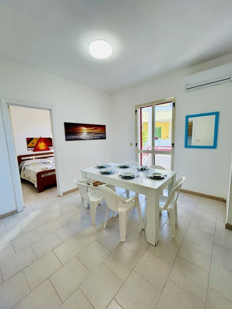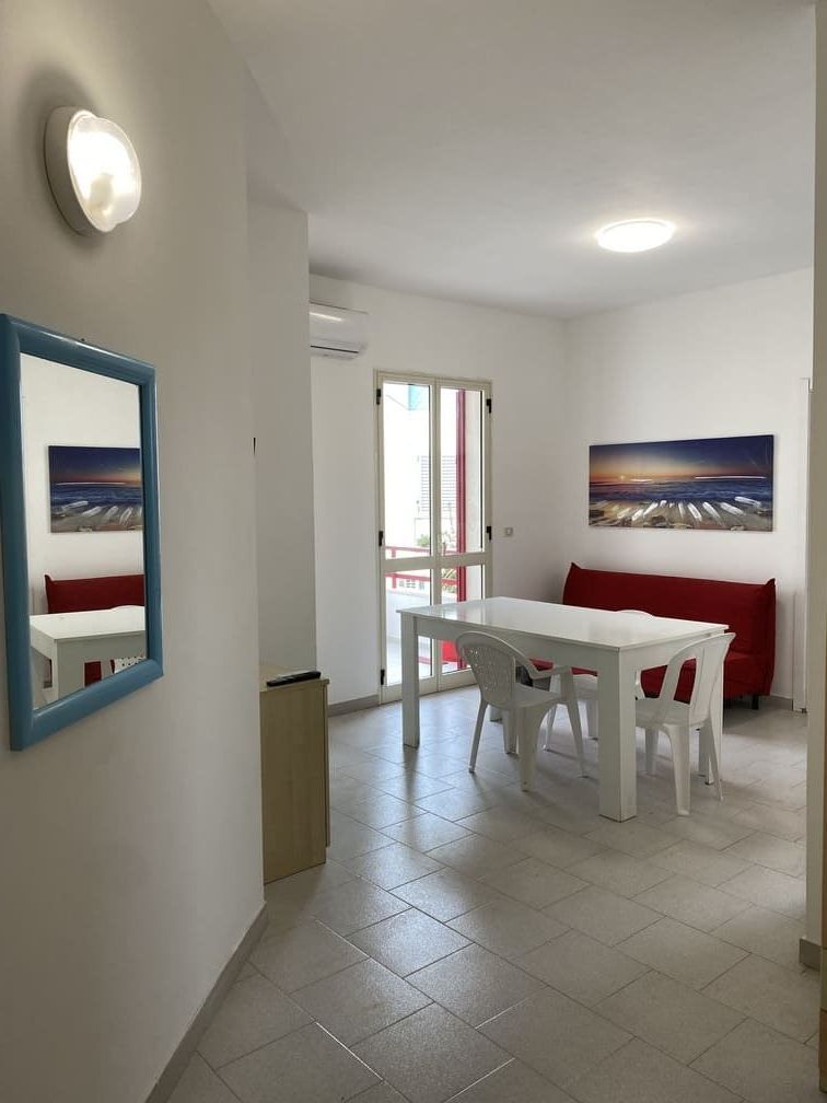Residenza MARINA è un trilocale situato in baia verde , composto da ingresso soggiorno, dove troviamo la zona pranzo con un divano,tv, una cucina attrezzata, due camere da letto una matrimoniale e l’altra con due letti singoli e un bagno con box doccia, ampia terrazza abitabile nella parte retrostante.