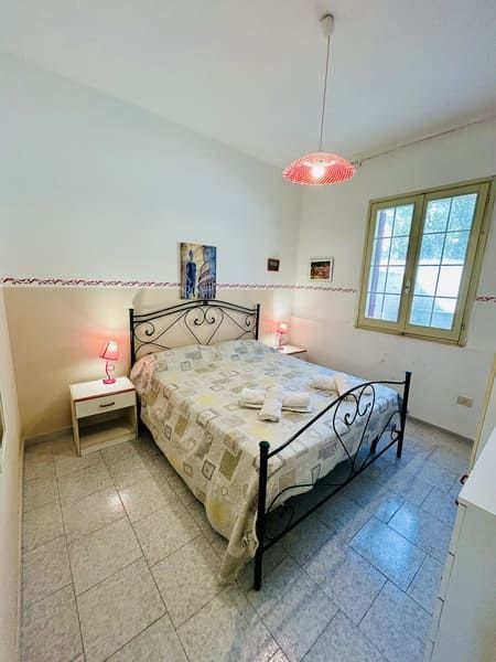 Villetta Mignolia è un trilocale situato in baia verde , composto da ingresso soggiorno, dove troviamo la zona pranzo con tavolo e sedie un divano e la tv, una cucina attrezzata, due camere da letto triple e un bagno con box doccia, ampia terrazza abitabile .